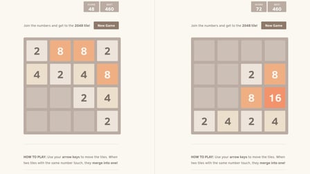 Untuk menikmati tahun 2048 di perangkat Anda telepon atau komputer, pindahkan ubin dengan menggunakan tombol panah atau geser ke arah yang Anda inginkan untuk menggabungkan ubin. Proses penggabungan akan otomatis terjadi ketika dua ubin dengan nomor yang sama bertabrakan. Awasi skor total Anda dan berusahalah untuk mengalahkan yang terbaik sebelumnya!