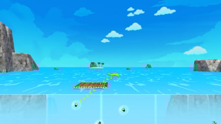 2. **Kumpulkan sumber daya**: Gunakan mouse Anda (di komputer) atau geser (di seluler) untuk berinteraksi dengan puing-puing yang mengapung dan mengumpulkan sumber daya seperti kayu dan plastik.