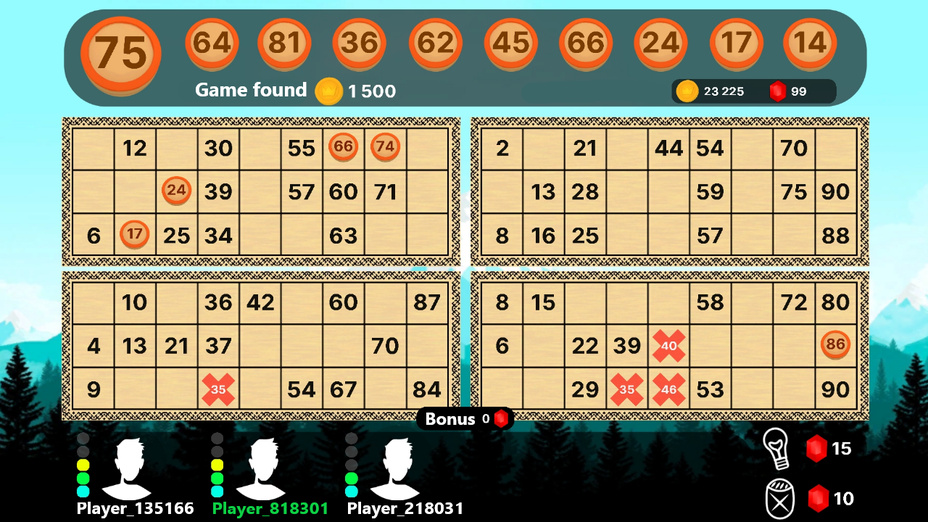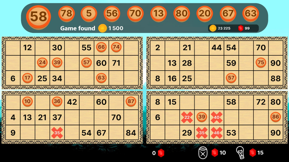 Maksimalkan peluang Anda untuk menang dengan tetap waspada dan melacak nomor yang dipanggil. Dalam mode "Singkat", fokuslah untuk menyelesaikan satu baris dengan cepat. Untuk mode "Panjang", susun strategi gerakan Anda untuk mencakup semua angka di tiket Anda. Dalam mode "Tiga per tiga", perhatikan dampak dari setiap garis tertutup pada dana permainan dan bertujuan untuk menutup garis bawah untuk kemenangan penuh. Ingat, konsistensi dan pemikiran cepat adalah kunci untuk naik peringkat pemain!
