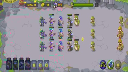 Fokuslah pada membangun pasukan yang seimbang dan meningkatkan tentara dengan bijak. Pantau medan perang dengan sering untuk menyesuaikan dengan gelombang zombie!