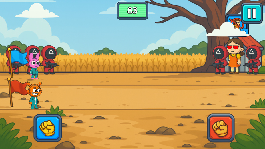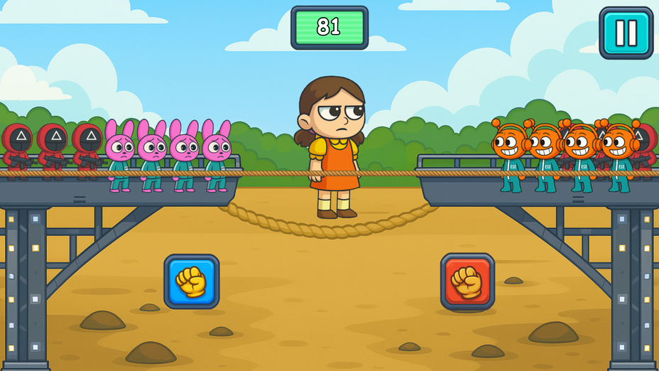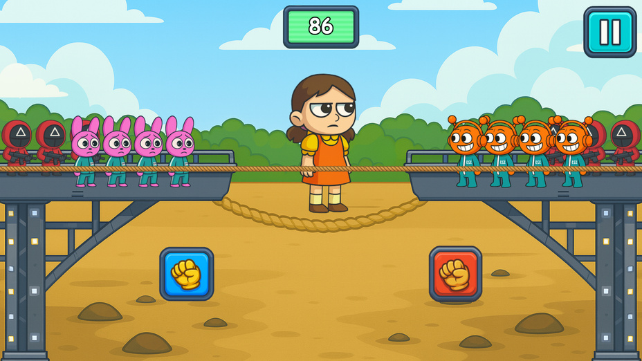 Selamat datang di Sprunki Squid Gaming, pengalaman bermain online yang penuh dengan tantangan mematikan dan kesenangan kompetitif! Dalam permainan ini, Anda harus bertahan hidup melalui dua mode permainan menarik. Pertama, coba kemampuan Anda di mode Lampu Merah, Lampu Hijau dan lihat seberapa cepat Anda dapat bergerak tanpa tersingkir. Tak hanya itu, Anda juga akan bertarung di tarik tambang melawan teman-teman Anda. Apakah Anda cukup berani untuk mengambil tantangan ini? Ayo buktikan!