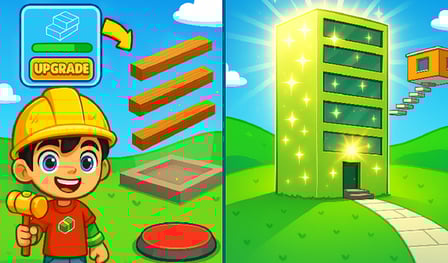 Jelajahi mansion Anda dengan mengklik berbagai lokasi konstruksi menggunakan mouse Anda di komputer, atau cukup ketuk area yang diinginkan pada perangkat seluler Anda. Jaga agar asisten robot Anda tetap beroperasi untuk pendapatan pasif dan gunakan fitur palu super untuk meledakkan diri Anda dalam mengumpulkan lebih banyak sumber daya!