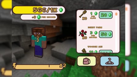 Kontrol dalam permainan ini sangat mudah: cukup klik atau ketuk pada layar untuk menghasilkan koin. Setiap klik berarti mendapatkan koin, dan Anda dapat menggunakan koin tersebut untuk meningkatkan kemampuan dan level Steve sesuai keinginan Anda.