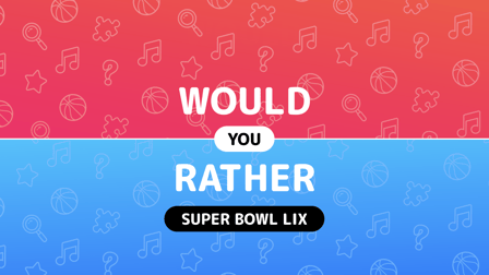 Super Bowl LIX mengambil inspirasi dari acara sepak bola Amerika yang ikonik, Super Bowl, yang terkenal dengan drama dramatisnya dan momen-momen yang tak terlupakan. Gim ini menggabungkan tema olahraga yang mendebarkan ini dengan format "Would You Rather" yang populer, menciptakan perpaduan unik antara strategi dan hiburan yang menarik bagi penggemar olahraga dan pemain kasual.