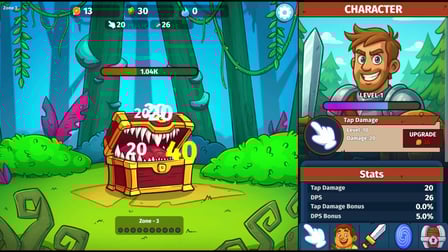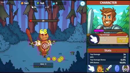 Mulailah petualangan Anda dengan mengetuk atau mengklik monster untuk mengalahkan mereka. Kumpulkan koin dengan mengetuk, mengklik, atau hanya mengarahkan kursor ke arah mereka. Koin-koin ini sangat penting untuk meningkatkan pahlawan Anda dan membuka kemampuan baru. Usahakan mencapai zona 50 untuk akses ke portal dunia baru, di mana lebih banyak harta dan tantangan menanti.