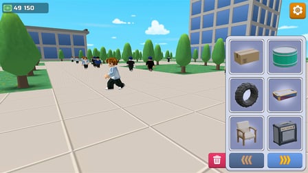 Anda dapat melemparkan berbagai item termasuk kotak, tong, dan berbagai objek lucu lainnya saat Anda maju.