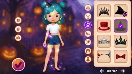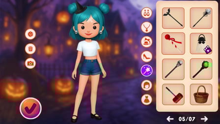 Di desktop, gunakan tombol kiri mouse untuk memilih kostum dan aksesori. Di perangkat mobile, cukup ketuk pada item yang ingin Anda pilih. Kontrol intuitif ini memungkinkan navigasi yang mulus melalui pilihan bergaya dalam permainan, memastikan Anda bisa fokus pada menciptakan tampilan Halloween yang sempurna.
