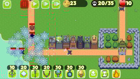 Untuk mengendalikan permainan: - Klik pada menara untuk memilih dan tempatkan di peta. - Tekan tombol mana untuk menggunakan mantra bola api dan bola es. - Upgrade menara dengan mengklik pada menara tersebut dan memilih opsi upgrade. - Pantau barisan monster dan atur strategi secara dinamis untuk setiap gelombang.