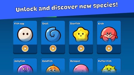 Untuk meningkatkan permainan Anda, pastikan untuk mengumpulkan sebanyak mungkin kartu edukasi! Kartu-kartu ini memberikan fakta menyenangkan dan akan membantu Anda menyelesaikan ensiklopedia laut Anda. Waspadai area bonus tersembunyi yang membantu Anda mendapatkan poin ekstra dan kemampuan spesial.