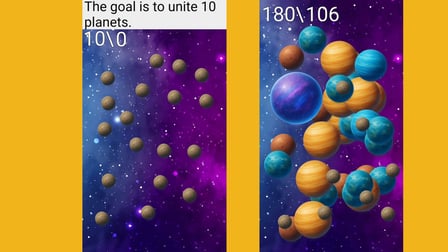 Siapkan diri Anda untuk menjelajahi semesta bintang dari Unite the Planets! Evolution!, sebuah permainan gratis yang menantang keterampilan permainan Anda melalui sembilan level yang semakin sulit. Siap untuk terlibat dalam sebuah alam semesta di mana Anda dapat membeli item penting dalam game dengan koin dan mengembangkan planet Anda menjadi raksasa yang tangguh? Siapkan diri Anda untuk petualangan yang melampaui angkasa!