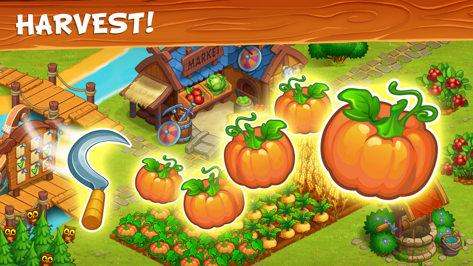 - Investasikan dalam memperluas desa Anda untuk meningkatkan kemampuan produksi Anda dan membuka petualangan baru.