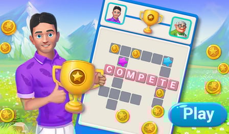 - Bersaing dengan pemain secara global untuk menjadi juara teka-teki kata