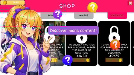 Guadagni valuta di gioco rispondendo correttamente alle domande prima che il timer scada, permettendoti di acquistare pacchetti o altre funzionalità.