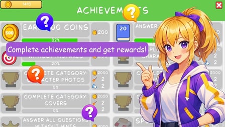 Per massimizzare il tuo punteggio, focalizzati sulle categorie e cerca di rispondere con rapidità. Gli acquisti di pacchetti anime ti aiuteranno a sbloccare nuovi contenuti mentre collezioni personaggi da inserire nel tuo schermo principale. Non dimenticare di competere con altri giocatori per apparire nella classifica globale!