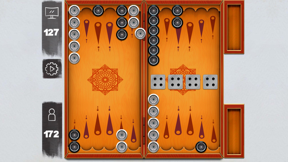 Il gioco del Backgammon coinvolge due giocatori, ciascuno con quindici pedine che si muovono tra ventiquattro triangoli secondo il tiro di due dadi. L'obiettivo è quello di essere il primo a sopportare tutte le pedine dal bordo. Questo gioco combina fortuna e strategia, come i giocatori devono decidere come spostare i loro pezzi a miglior vantaggio, mentre il blocco e colpire pedine del loro avversario.