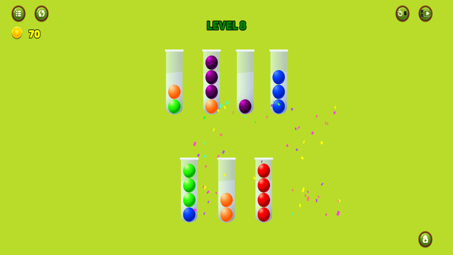 Il nucleo del puzzle di ordinamento palla ruota intorno ordinamento palline colorate nelle rispettive boccette. Ogni livello presenta una nuova configurazione di palloni e palle, aumentando in difficoltà come si procede. L'inclusione di boccette speciali che accettano solo un colore aggiunge un tocco unico al tradizionale gioco di smistamento. Questa combinazione di semplicità e sfida assicura che i giocatori rimangano impegnati e intrattenuti.