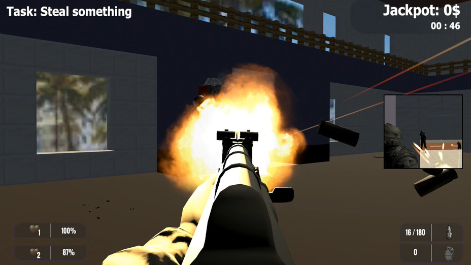 Unire le forze in Rapina in banca come si naviga attraverso mappe intricate piene di nemici pesantemente armati. Armati di una serie di armi, tu e il tuo partner affronterete guardie dotate di tecnologia all'avanguardia. La fisica ragdoll dinamica creare divertenti momenti di combattimento e aggiungere uno strato di eccitazione come si traccia la vostra fuga.