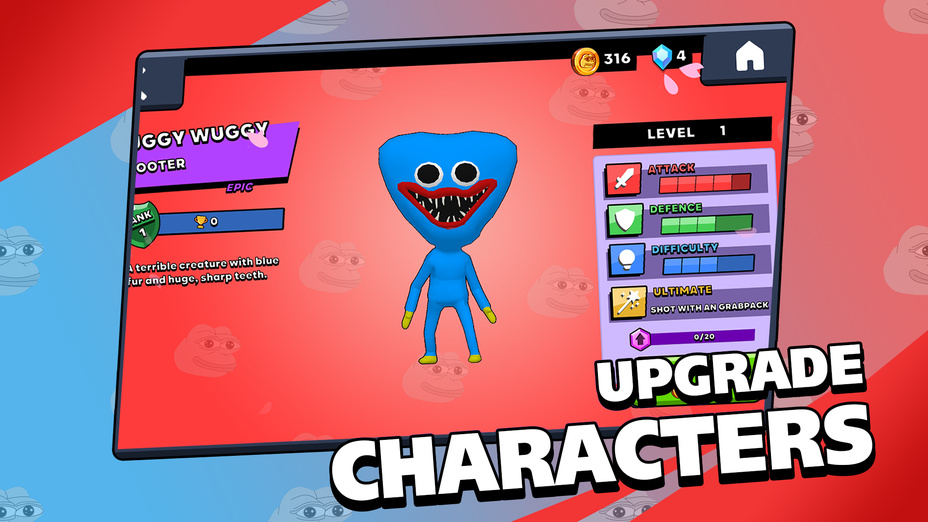 Battle Memes attinge alla recente popolarità dei memi e lo combina con un gameplay basato sull'azione che fa appello sia alle folle di gioco casuali che competitive. Emergendo in un paesaggio saturo di social media e tendenze virali, questo gioco cattura l'essenza dell'umorismo online attraverso i suoi personaggi unici e divertenti meccaniche di battaglia.