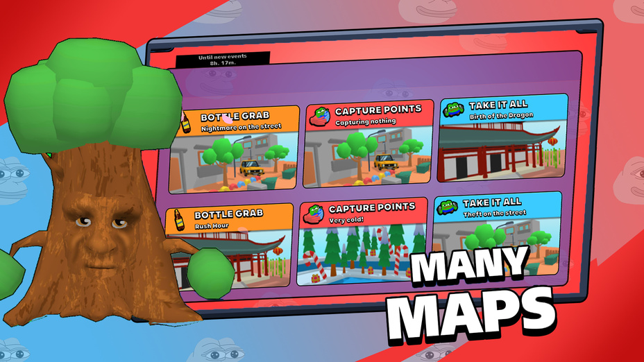 Immergiti in un'esperienza online esilarante con Meme da battaglia-Meme Battle, dove le battaglie si svolgono in arene vivaci piene di personaggi umoristici e un gameplay emozionante. Se siete su un Telefono o un computer, immergiti in libero battaglie che mettono alla prova le tue abilità strategiche e riflessi pronti. Con varie modalità di gioco come la raccolta di bottiglie e la cattura del territorio, ogni incontro presenta una nuova sfida in cui puoi impegnarti contro altri giocatori o avversari IA, garantendo incontri vari in questo universo pieno di meme.