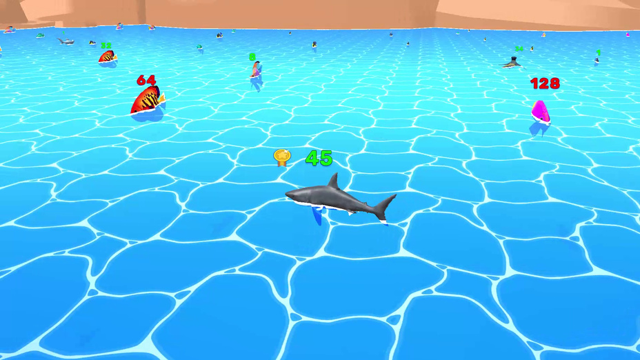 Essere uno squalo! è un gioco simulatore arcade esilarante che vi invita a tuffarsi nelle profondità dell'oceano e assumere il ruolo di uno squalo temibile. Prova l'emozione di diventare il più grande predatore divorando i pesci e sconfiggendo gli squali rivali. Gioca online gratuitamente senza la necessità di scaricare, e immergersi nella alta qualità, infinita avventura acquatica. Mentre navighi nel vasto oceano, devi rimanere vigile, perché anche gli altri giocatori sono in lizza per il dominio, desiderosi di consumarti. Salirai in cima o diventerai il pasto di un altro squalo? Scopri il nostro negozio unico pieno di squali leggendari e stili esclusivi che ti permettono di distinguerti nelle feroci battaglie navali. Affronta la sfida, affermare il tuo posto come il re dell'oceano, e far sapere a tutti che sei il campione. Sei pronto a intraprendere questo viaggio pericoloso ma gratificante?