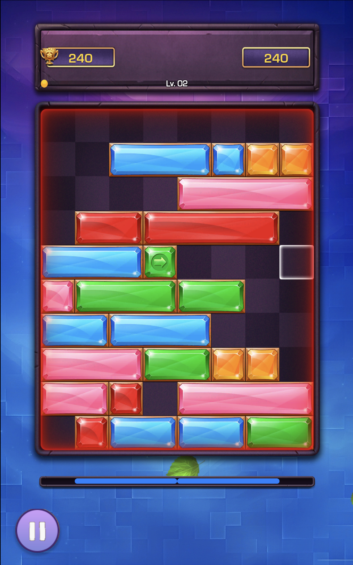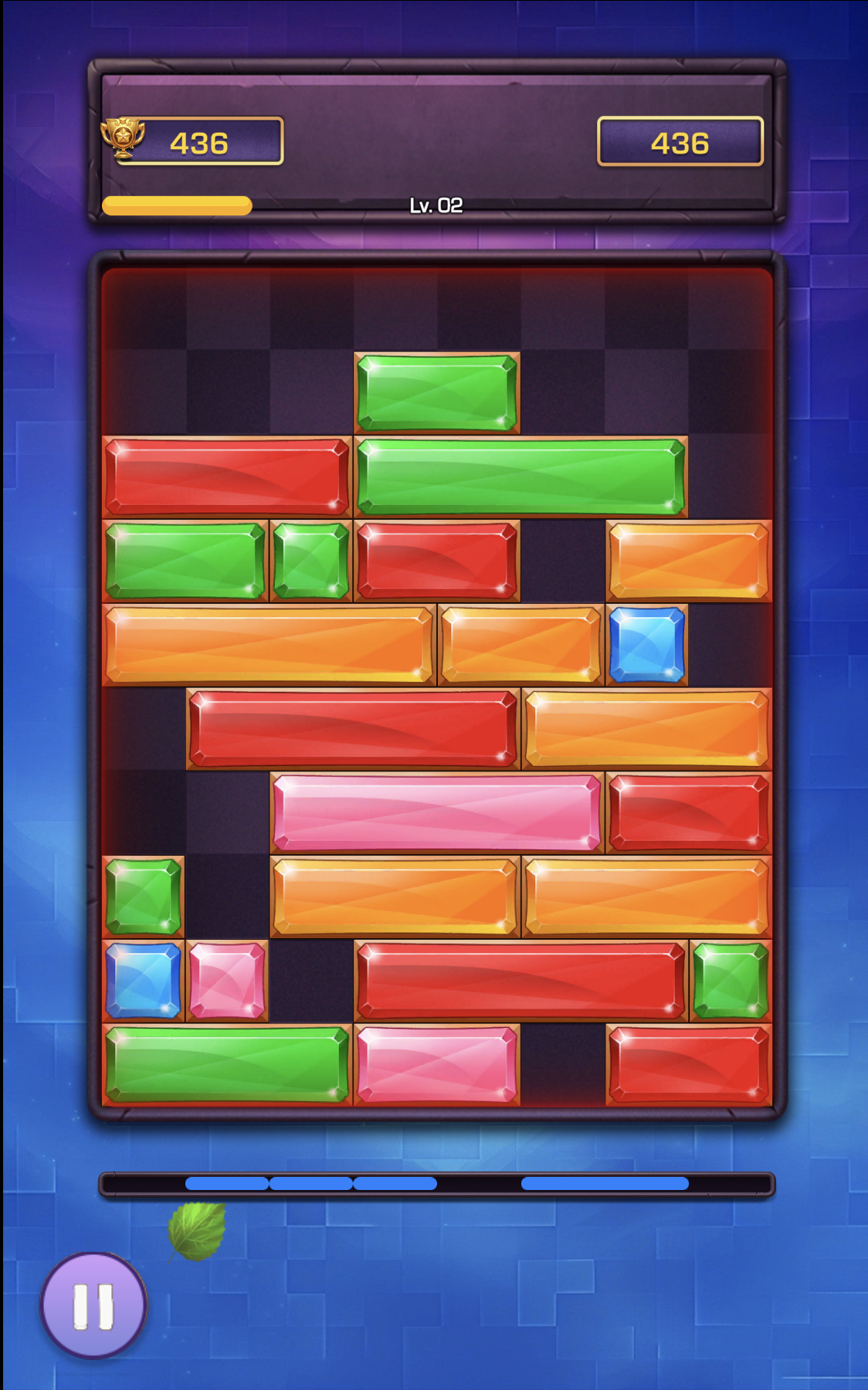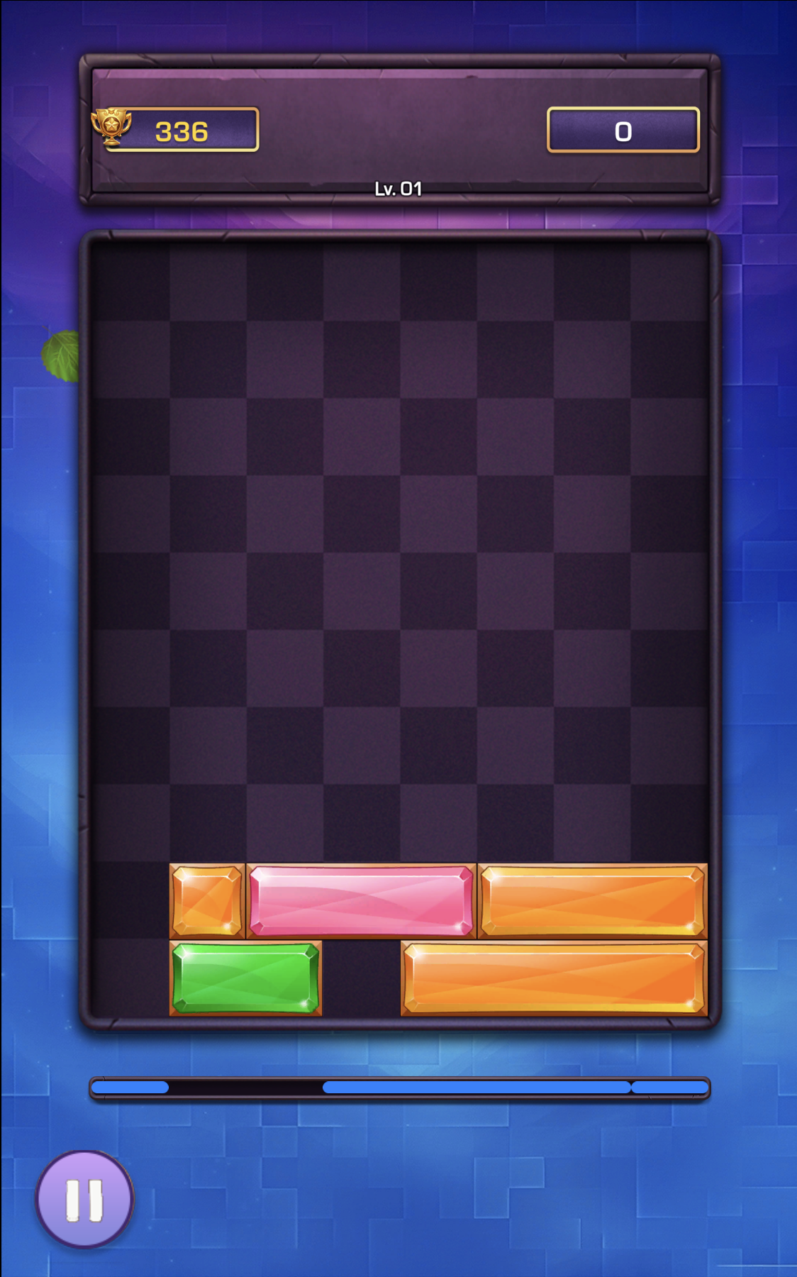 La tensione cresce lentamente, poi ti colpisce come un camion. I livelli iniziali sono tranquilli—stai scivolando casualmente i blocchi, cancellando linee, sentendoti invincibile. Ma intorno al Livello 2, il campo di gioco inizia a riempirsi più rapidamente, e improvvisamente sei in ansia per decidere se lasciare un vuoto o rischiare un combo maggiore. L' estetica a tema gemma con i suoi blocchi lucidi e i bordi con texture di pietra conferisce un aspetto raffinato ai puzzle per dispositivi mobili—pensa a Candy Crush incontra Tetris, ma ridotto a pura strategia. Niente animazioni appariscenti a distrarti; il design minimalista mantiene i tuoi occhi fissi sulla griglia.