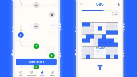 Block Puzzle Sudoku è una fusione accattivante di classici puzzle a blocchi e la sfida logica del Sudoku. Questo gioco coinvolgente invita i giocatori a riempire una tavola 9x9 con blocchi colorati, impiegando il pensiero strategico e le capacità di problem-solving per cancellare le linee sia orizzontalmente che verticalmente. La miscela unica di questi generi crea un ambiente rilassante ma stimolante che fa appello a una vasta gamma di giocatori. In Block Puzzle Sudoku, i giocatori manipolano varie forme composte da blocchi cubici, con l'obiettivo di creare righe e colonne complete sulla griglia. L'estetica del gioco è spesso arricchita da un layout a tema blu, che lo rende visivamente accattivante mentre si esercita il cervello.