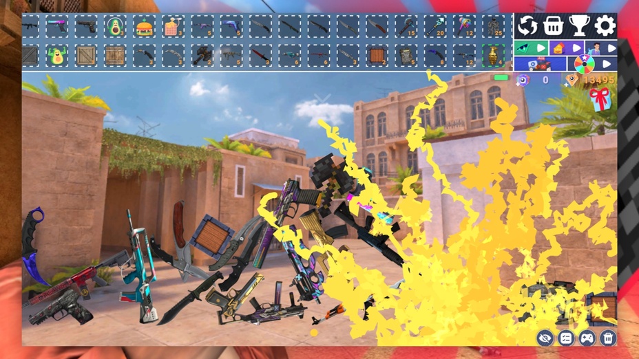 Avrai accesso a una varietà di armi ispirate a Standoff 2, tra cui fucili, shotgun e altro. Ogni arma offre vantaggi unici per infrangere il bedrock!