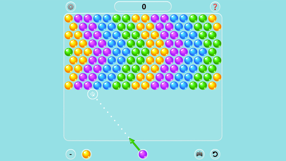 Usa il mouse per mirare il tiratore bolla e fare clic per sparare. Su un dispositivo touch, è sufficiente toccare lo schermo per mirare e sparare. La bolla viaggerà nella direzione in cui miri, quindi assicurati di allineare il tuo tiro con attenzione per colpire il bersaglio desiderato.