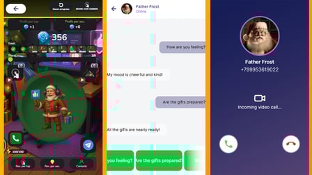 Scopri un mondo pieno di gioia e risate! Call Santa Claus: Father Frost Video Call and Chat mescola visivi affascinanti e coinvolgenti gameplay per creare un'esperienza natalizia immersiva. I giocatori interagiscono con Babbo Natale, che evolve attraverso fasi distinte, rivelando nuove sorprese e capricci ogni volta. Le animazioni allegre e le trasformazioni magiche promettono un'avventura festiva unica!
