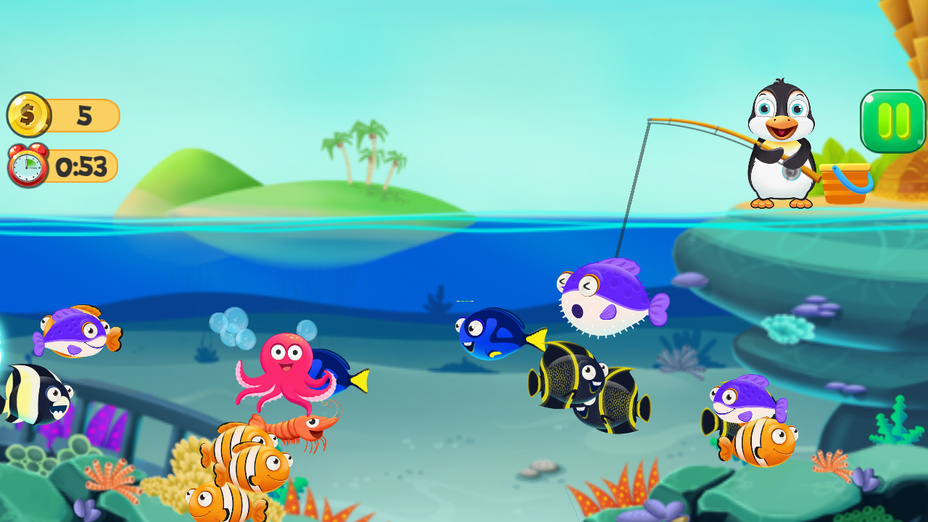 Catch the Goldfish è un emozionante gioco casual in cui è possibile partecipare Pinguino felice sulla sua avventura di pesca. Gioca online gratuitamente senza scaricare e immergiti nel vibrante mondo sottomarino pieno di simpatici animali marini e pesci pronti per essere sistemati nel tuo piccolo acquario. Goditi un'esperienza di gioco rilassante mentre navighi attraverso questo affascinante gioco basato su browser su desktop, Android e iOS. Il vostro obiettivo è quello di catturare il maggior numero di pesci deliziosi possibile, evitando i potenti squali che potrebbero rompere la canna da pesca. Questo gioco è perfetto per i bambini e chiunque sia alla ricerca di un passatempo semplice ma coinvolgente. Quindi, prendi la tua canna da pesca virtuale e preparati per una divertente giornata di pesca!