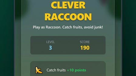 Clever Raccoon invita i giocatori a navigare attraverso un paesaggio colorato e stravagante pieno di oggetti che cadono. Il tema leggero bilancia il divertimento e la sfida, assicurando che i giocatori siano sempre coinvolti e intrattenuti. La sfida aumenta con ogni livello, richiedendo riflessi pronti e una buona intuizione.