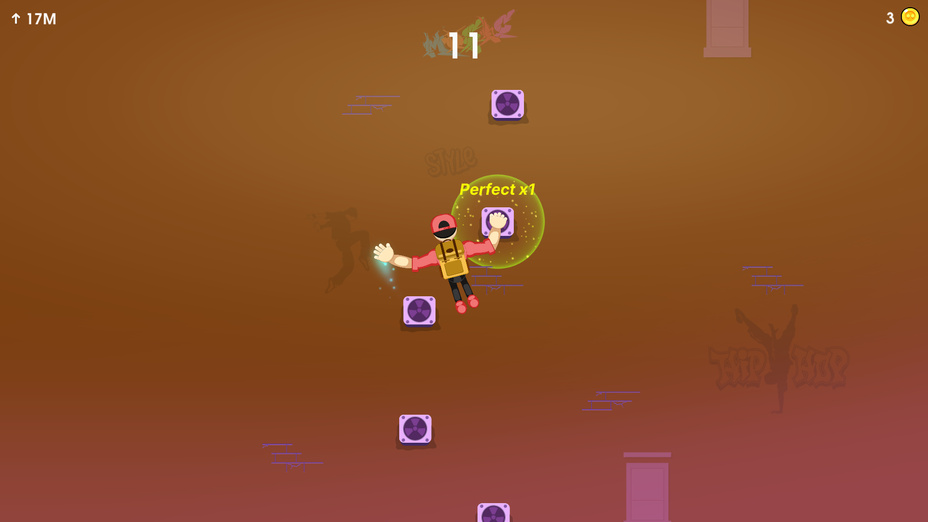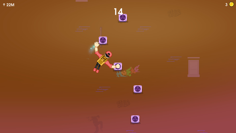 I controlli sono incredibilmente semplici: sui dispositivi mobili, basta toccare lo schermo per aggrapparti; sui computer desktop, fai clic per saltare e aggrapparti alle piattaforme. È tutto questione di tempismo: troppo presto, e lo perdi; troppo tardi, e cadi!