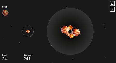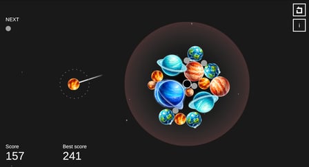 "Combine planets! Launch celestial bodies. Push planets together to merge into new, larger ones. Your goal is to evolve from tiny asteroids to giant stars, but act wisely — the universe won't have much room left!"