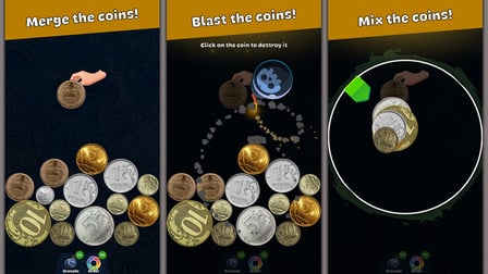 Clicca sulle monete per selezionarle per la fusione su un computer. Su mobile, tocca le monete che desideri unire. Ricorda, unire due monete identiche eleva immediatamente la tua giocabilità! Assicurati di non lasciare che la tua pila di monete oltrepassi i limiti!