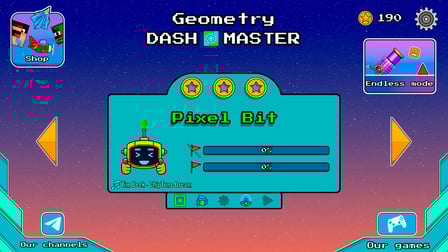 Benvenuti a Geometry Dash Master, dove è invitato a sperimentare gameplay dinamico impostare una colonna sonora esilarante! Questo ultra-coinvolgente gioco online sfida i giocatori a navigare attraverso livelli innovativi pieni di ostacoli ipnotizzanti. Immergiti in questo regno di ritmo e precisione, perfezionando le tue abilità mentre conquisti ogni posizione unica.