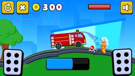 R: Guadagna monete completando i livelli e usale per acquistare nuovi camion dei pompieri.