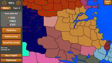 Usa il mouse per cliccare tra le opzioni o scorri la mappa. Distribuisci le truppe selezionandole dal menu del tuo esercito, quindi colpisci i territori nemici cliccando su di essi. Le scorciatoie da tastiera possono anche migliorare il tuo gameplay, comprese le scorciatoie per costruire e navigare rapidamente nella mappa.