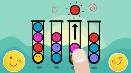 Per iniziare a giocare Emoji Color Ball Sort, è sufficiente selezionare le palle emoji e trascinarle in tazze vuote. L'obiettivo è quello di riempire ogni tazza con palline dello stesso colore. È un processo semplice ma accattivante che chiunque può padroneggiare.