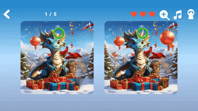 Trova le differenze: Animali e capodanno 2024 è un emozionante gioco di puzzle in cui puoi concederti il divertimento di individuare le differenze tra due immagini festive e a tema animale. Gioca online gratuitamente senza scaricare e immergiti nell'atmosfera di un paese delle meraviglie invernale, pieno di simpatici personaggi e animali affascinanti. Questo gioco offre un ambiente caldo e festoso, perfetto per la stagione delle vacanze di Capodanno 2024. Con 57 livelli intriganti, ognuno con un numero variabile di differenze nascoste, promette un'esperienza coinvolgente per i giocatori di tutte le età.
