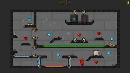 Immergiti nel mondo incantevole di Fireboy and Watergirl 5 Elements, un'avventura affascinante che sfida le tue abilità di risoluzione dei puzzle! Esplora templi mistici dove dovrai guidare entrambi i personaggi attraverso ambienti pericolosi pieni di lava e pozzanghere d'acqua. Il tuo obiettivo è navigare strategicamente Fireboy e Watergirl attraverso ogni livello, utilizzando vari pulsanti, leve e piattaforme per garantire la loro sicurezza.