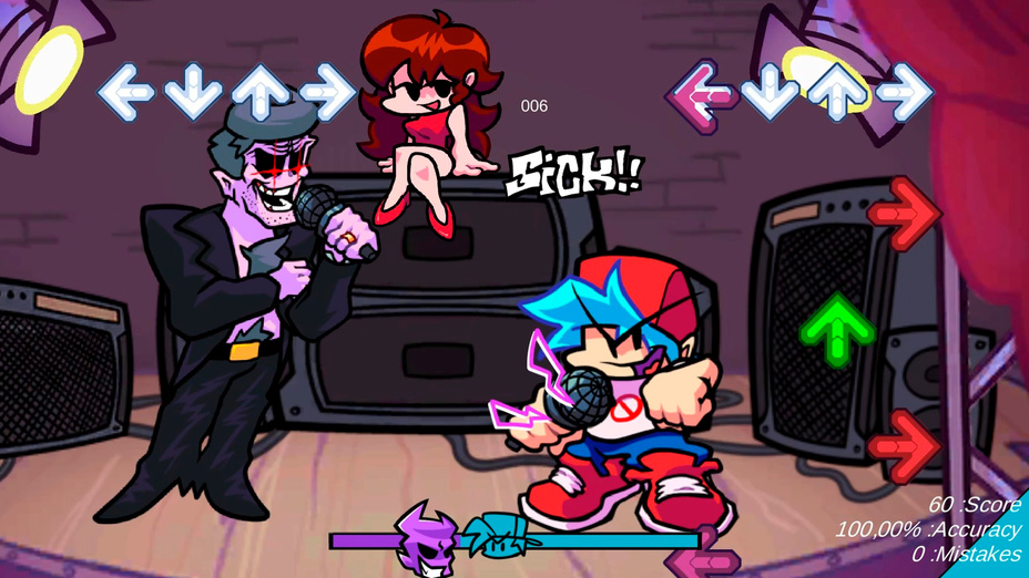 Friday Night Funkin Animania è un gioco arcade casual esilarante in cui puoi mostrare le tue abilità ritmiche e migliorare la tua abilità musicale. Gioca online gratuitamente senza scaricare e immergiti nel mondo vibrante e dinamico delle battaglie rap. Impegnati in emozionanti showdown mentre crei frecce per abbinare il tuo stile, affrontando il padre della tua ragazza in una serie di tre elettrizzanti canzoni. Se si sceglie di giocare come il padre o il personaggio principale, noto come il fidanzato, l'emozione non finisce mai! Personalizza la tua esperienza di gioco con varie impostazioni, tra cui il colore delle frecce e le regolazioni della posizione, rendendo ogni sessione di gioco unica. Se la sfida ti sembra travolgente, passa alla "modalità facile" per un'esperienza più fluida. Dimostra il tuo coraggio come il rapper finale in questa accattivante avventura online!