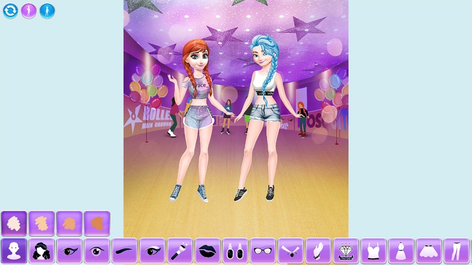È possibile scegliere abiti, acconciature, tonalità della pelle, e anche le opzioni di trucco per creare il look perfetto per Anna ed Elsa.