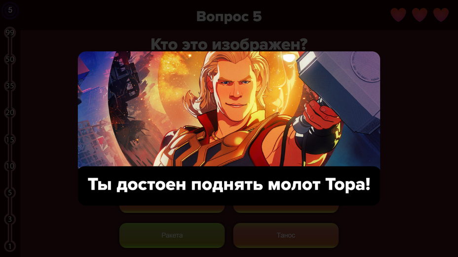 Se esaurisci tutti i tuoi cuori, hai comunque un'ultima possibilità per continuare a giocare, permettendoti di continuare a testare le tue conoscenze su Marvel!
