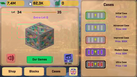Basta cliccare sul tuo mouse o toccare lo schermo sul tuo dispositivo mobile per iniziare a raccogliere blocchi. Ogni clic di successo genera risorse, mentre gli aggiornamenti possono essere attivati tramite un menu intuitivo che appare dopo aver accumulato abbastanza valuta.