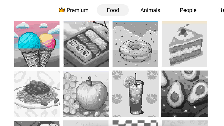 Puoi scegliere tra una varietà di categorie, tra cui animali, cibo, oggetti e temi della natura, ognuna con pattern unici e bellissimi da colorare.
