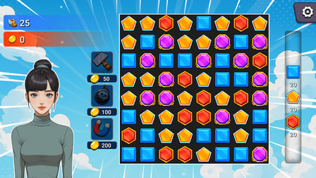 Usa il tuo mouse o i controlli touch per selezionare e scambiare le tessere sullo schermo. Ogni abbinamento riuscito farà animare l'allegra eroina anime che reagisce ai tuoi successi, aggiungendo un elemento giocoso ai tuoi progressi.