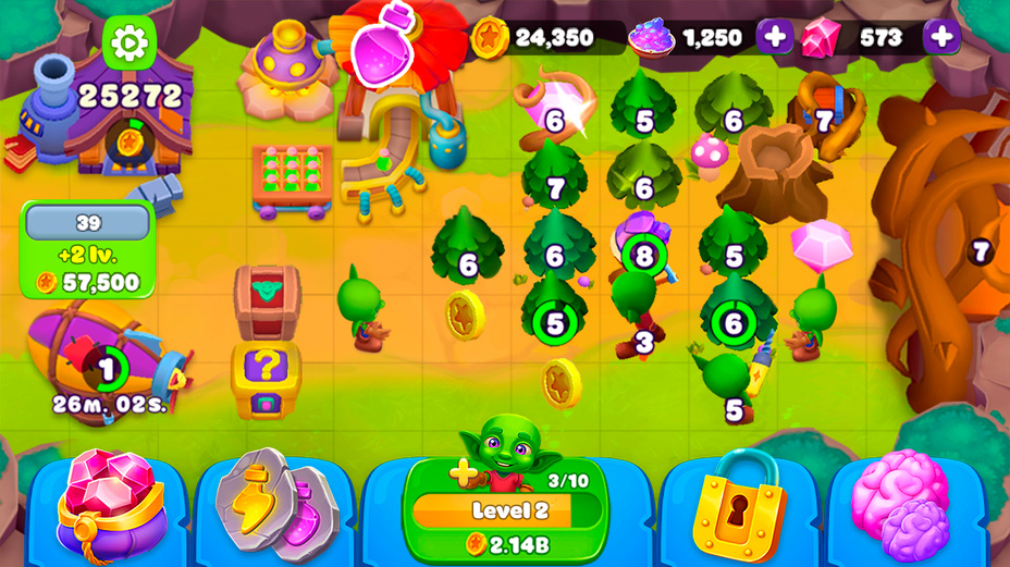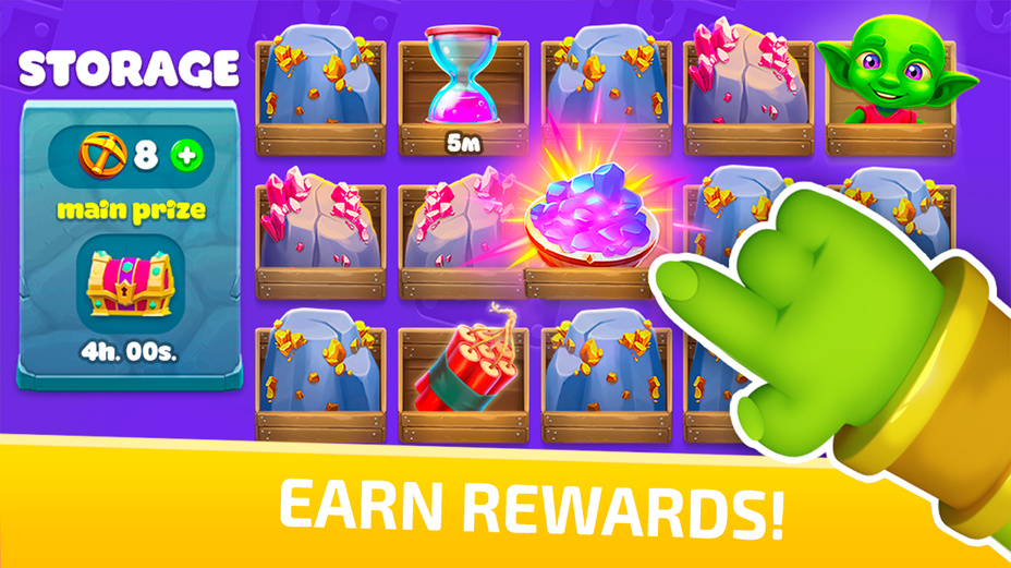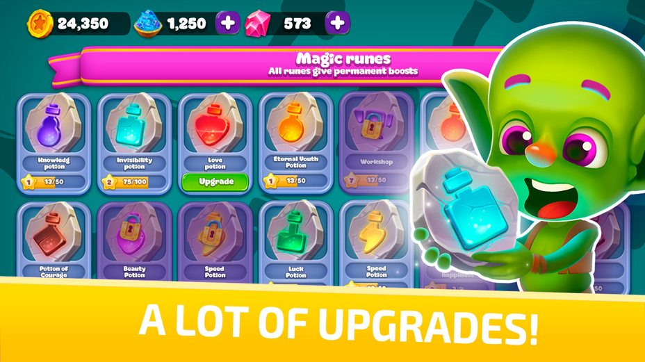 - Raccogliere power-up per migliorare l'efficienza dei vostri lavoratori goblin