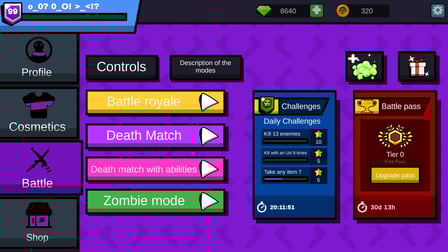 In HeadHunterZ, ogni partita è una prova di astuzia e abilità. La varietà di modalità mantiene fresca l'esperienza: dal tumultuoso Battle Royale dove rimane in piedi solo l'ultimo, al combattimento intenso uno contro uno nella modalità Deathmatch. Grafica visivamente sconcertante e un'atmosfera avvincente assicurano che i giocatori siano sempre all'erta mentre navigano attraverso le battaglie pericolose contro zombie e altri gamer.