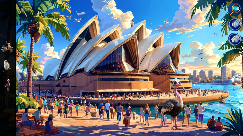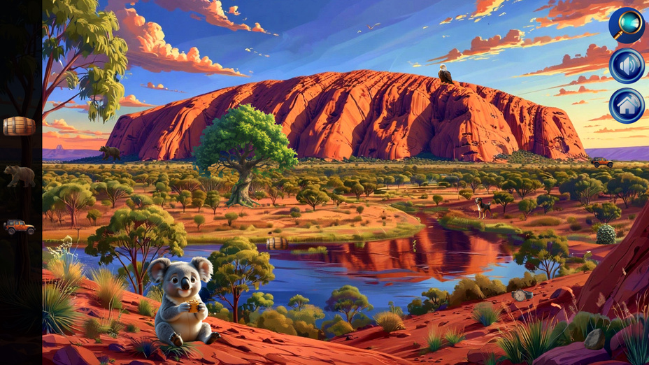 Benvenuto nell'incredibile Australia! Hidden Objects: Australia ti trasporta in un viaggio aventuroso dove dovrai risolvere enigmi e trovare oggetti nascosti in varie località splendide. Immergiti in un’esperienza online senza precedenti e scopri i magnifici paesaggi australiani mentre metti alla prova le tue abilità. Ogni livello offre sfide uniche che metteranno a dura prova la tua attenzione e capacità di osservazione!