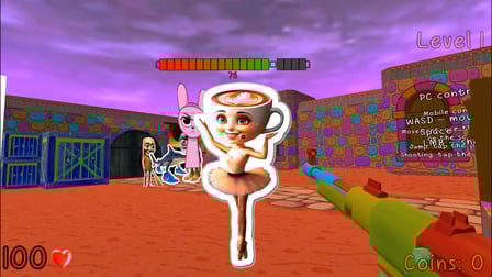 Iniziare a giocare a Italian Memes: 3D Shooter è facile! Su un computer, usa i tasti WASD per navigare il tuo personaggio attraverso vari terreni. Il mouse controlla il tuo mirino, e cliccando il pulsante sinistro spari la tua arma. Premi la barra spaziatrice per saltare e muoverti velocemente nell'ambiente. Se stai giocando su un dispositivo mobile, basta toccare per sparare e utilizzare i controlli a schermo per muoverti!